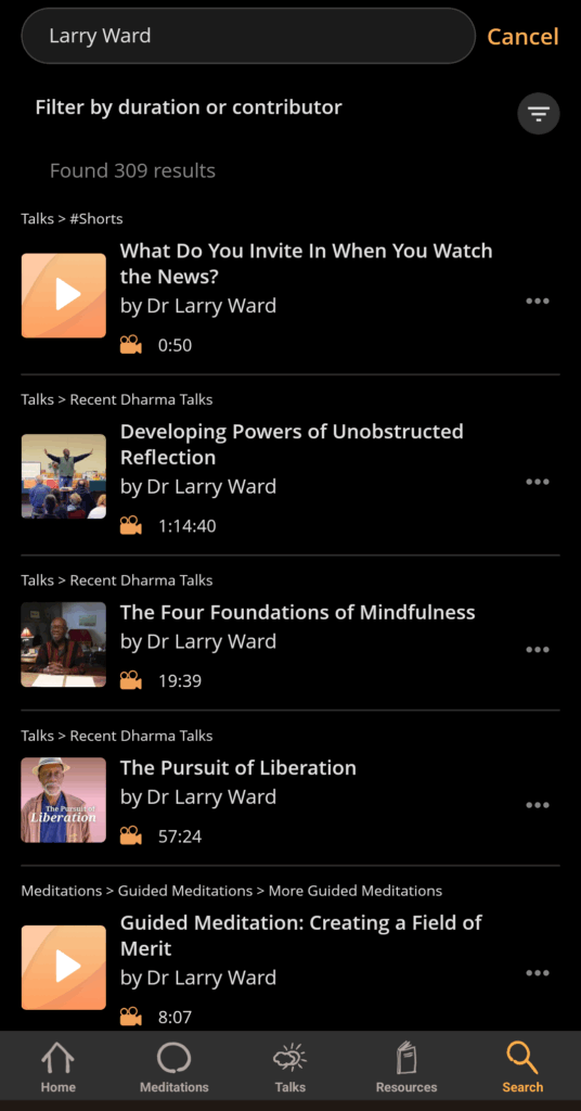 Five short films were released on the app in late September and October 2025 in honour of Larry. Directed and edited by Miguel Sanchez, these films meld Larry’s words – from public talks, meditations, and recitations – with contemplative footage of the natural world.
